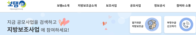 보탬e 시스템은 지방보조금의 소개와 사업 정보 및 공시와 소통 기능을 제공하는 종합 관리 창구입니다.