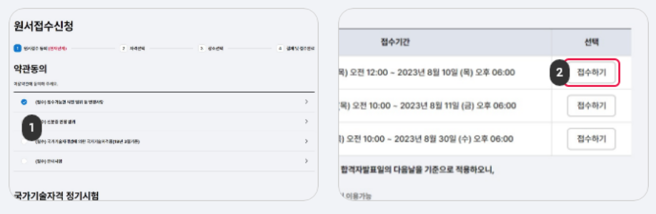 - 원서 접수 및 합격자 발표