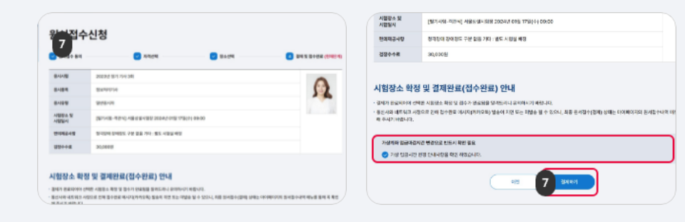 7. 응시 종목과 등급 및 시험 장소와 시험 일시 및 검정 수수료를 확인한 뒤 가상계좌 입금 안내사항을