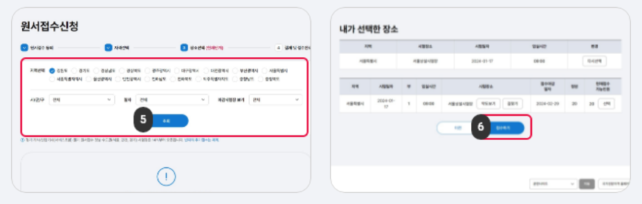 6. 원하는 시험장을 선택해 접수를 진행합니다