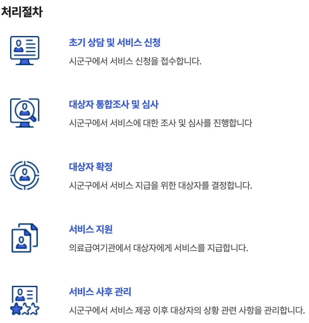 - 주민센터 사회복지 담당 공무원에게 신청서와 서류 제출