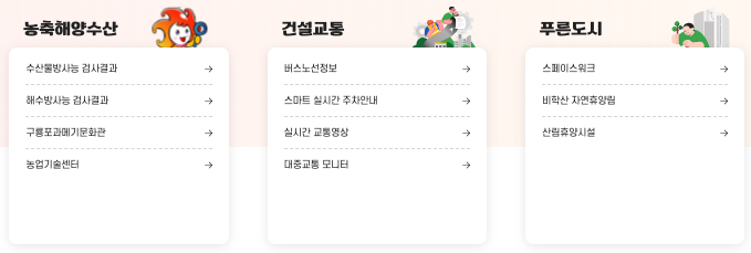 - 농축해양수산과 경제 및 교육 등 생활밀착형 정보