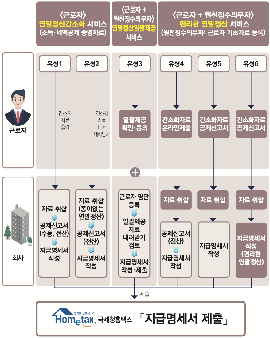 국세청은 1월 17일부터 회사에 간소화 자료를 제공하며 근로자 및 회사가 연말정산을 효율적으로 수행할 수 있도록 지원해 줍니다.