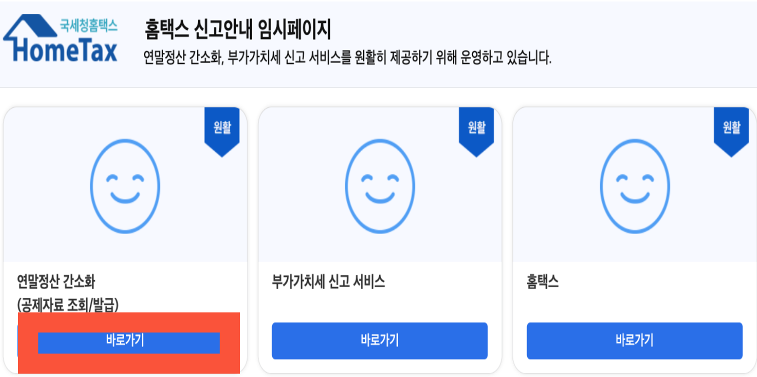 2. 홈택스 신고 안내 임시페이지 화면에서 바로가기를 누릅니다.