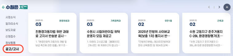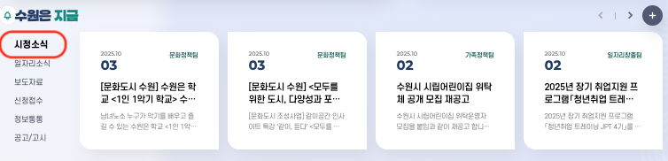 수원은 지금은 시정소식·일자리 소식·보도자료·신청접수·생활정보·공고를 한눈에 제공하는 최신 소식 창구입니다.