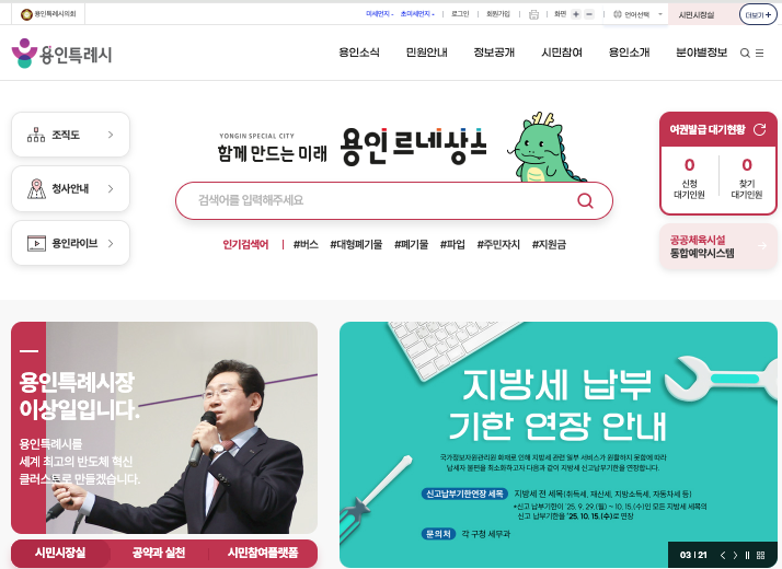 용인시청 홈페이지는 단순히 행정 업무만 처리하는 곳이 아니라, 시민들이 용인시의 정책과 지역 정보를