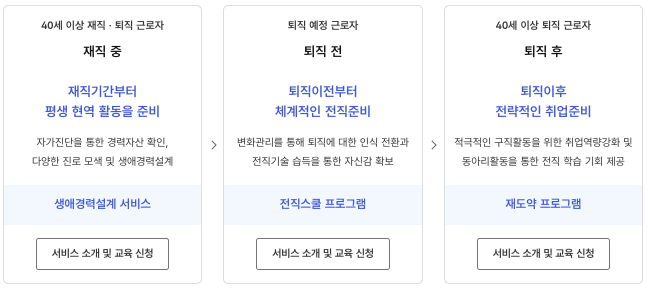 - 승인 이후 해당 서비스(생애경력설계와 전직스쿨 및 재도약 등) 프로그램 참여