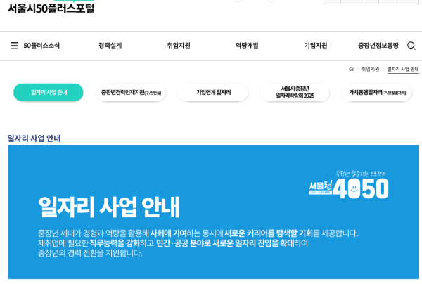 시니어 일자리 정보 사이트 '서울시 50 플러스 포털'은 서울시가 운영하는 중장년층(40~60대)을