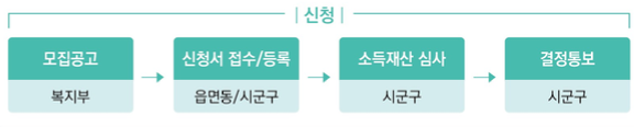 - 행정복지센터에서 자격 심사 후 시·군·구에서 최종 결정