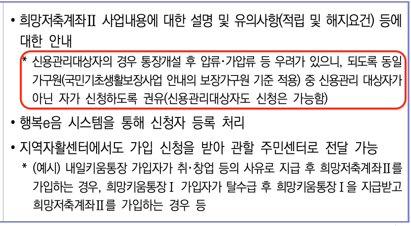 - 희망저축계좌Ⅱ는 근로나 사업소득이 있는 저소득층이 일정 소득·가구·신용 요건을 충족하면