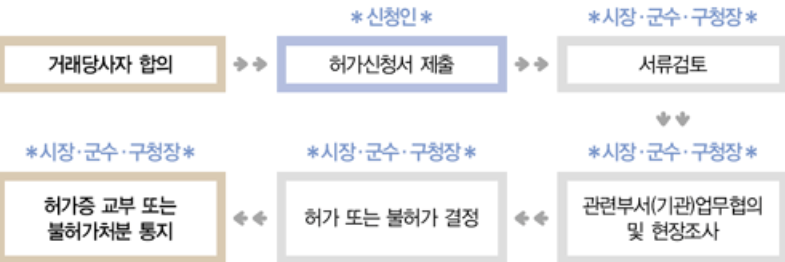 - 계약을 체결하기 전에는 반드시 시장·군수·구청 등 관할 기관에 허가 신청