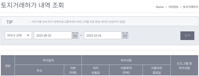 해당 지역이 허가구역에 포함되어 있는지 확인 할 수 있음.