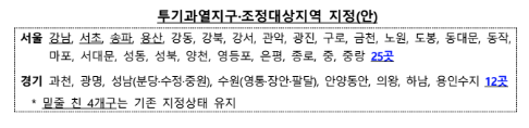 - 서울 전역의 나머지 21개 자치구 모두 새롭게 조정대상지역으로 지정됨.