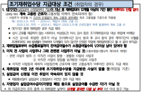 ◇ 재취업 전날 기준으로 남은 소정급여일수가 절반 미만인 경우