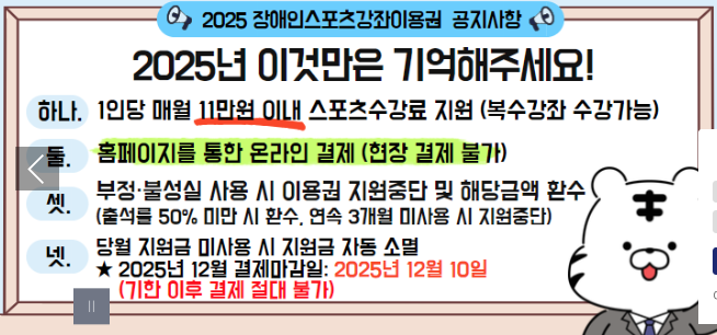 세부 신청 방법과 이용 안내는 장애인스포츠강좌이용권 공식 누리집에서 확인 가능합니다.