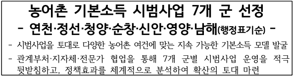 농어촌 기본소득 시범지역 7곳 선정