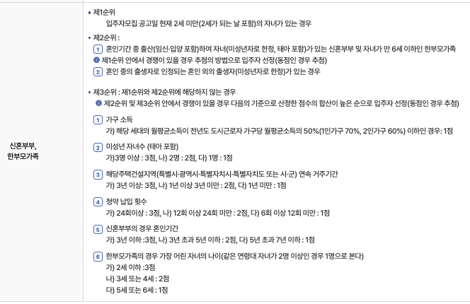 - 소득이 낮은 가구일수록 우선 공급됩니다.