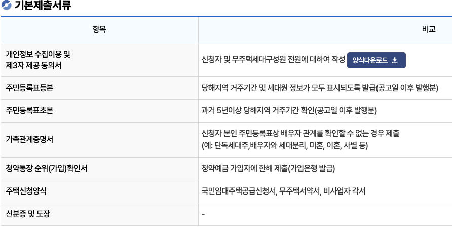※ 모든 서류는 입주자 모집공고일 이후 발급된 서류만 인정하고, 상황에 따라 추가 서류가 요청될 수 있습니다.