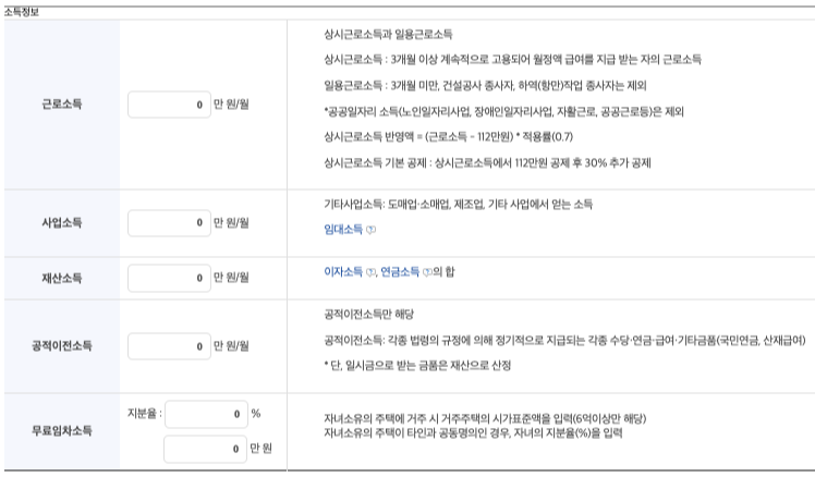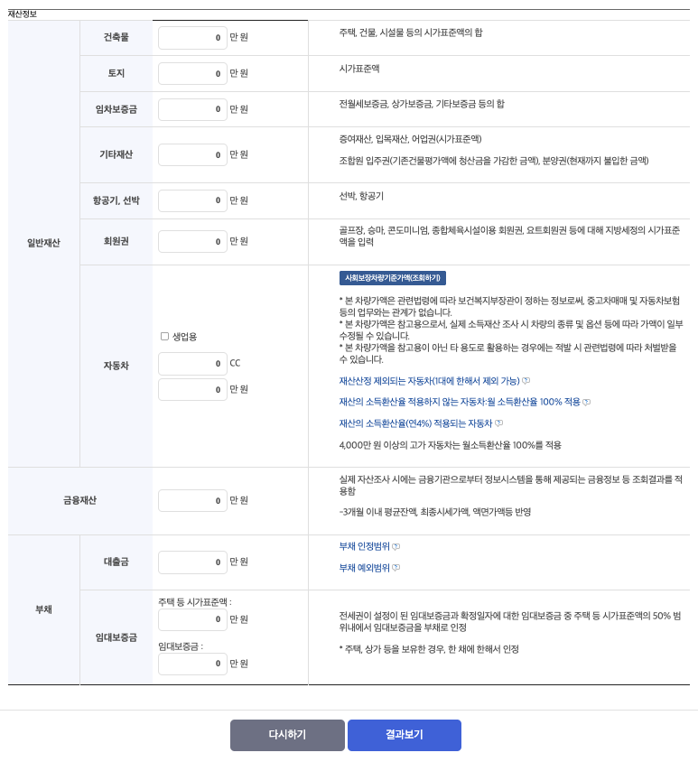 이용자가 입력한 소득과 재산 정보를 바탕으로 소득인정액이 자동 계산되며, 이를 통해