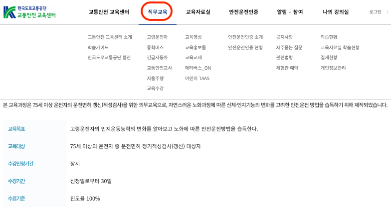 - 만 75세 이상 운전자는 면허 갱신 전에 고령운전자 교통안전교육을 반드시 이수해야 함