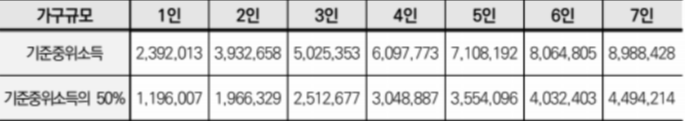 '소득인정액'이 기준 중위소득의 50% 이하일 경우