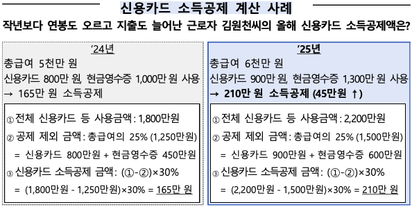 1. 자동차·보장료·공과금·상품권·면세점 지출 및 월세 공제분은 신용카드 소득공제 대상에서 제외됩니다.