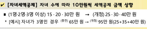 <예시> 자녀가 3명일 경우 기존 65만 원에서 95만 원으로 공제금액이 증가합니다.