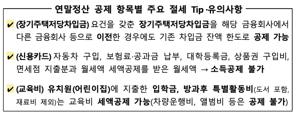 ◇ 또한, 연말정산에서 문의가 많은 7대 공제항목(기부금·교육비·주택자금 등)에