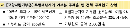 ◇ 특별재난지역에 기부할 경우 기존보다 더 높은 공제율 적용