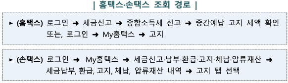 → 홈택스나 손택스에 로그인한 뒤 'My홈택스 에서 고지내역’ 메뉴에서 확인할 수 있습니다.