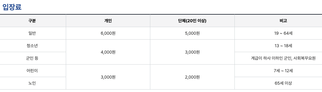 - 어린이(7~12세), 노인(65세 이상) : 3,000원