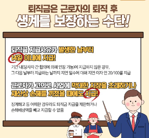 퇴직금 지급 규정은 근로자의 경제적 안정을 보장하는 핵심적인 노동법 조항 중 하나로 이를 위반하는 경우 근로자는 노동청에 제보하여 보호받을 수 있습니다.