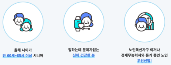 - 만 65세 이상 또는 만 60세 이상 사업단 요구 능력 충족자