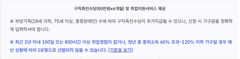 연계받으실 수 있으며, 구직 과정에서 부담이 커지지 않도록 일정 기준을 충족하면