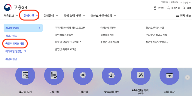- 국민취업지원제도 메뉴를 통해 신청 절차 및 참여 단계도 함께 확인 가능합니다.