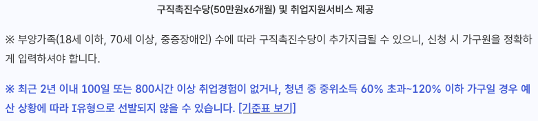- 제도 참여 전 구직 등록을 먼저 진행해야 하며, 이력 정보 작성이 필요합니다.