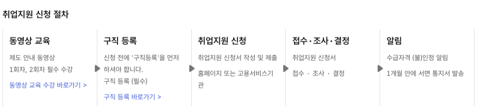 - 실업급여 관련 안내와 신청 절차를 한 화면에서 확인할 수 있습니다.