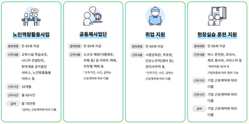 노인일자리 여기 홈페이지 주요 일자리 사업