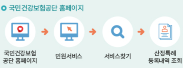 공단 홈페이지 → 민원서비스 → 서비스 찾기 → 산정특례 등록내역 조회