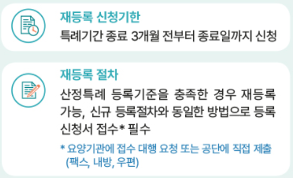※ 중증화상 재등록은 반드시 공단 지사에 직접 제출해야 함