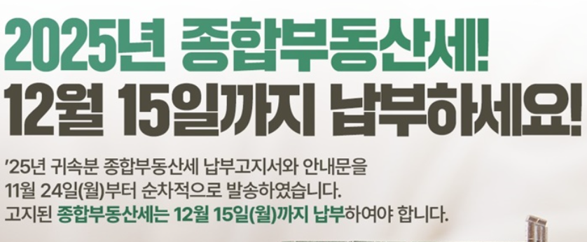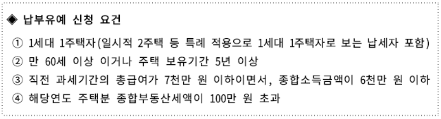종합부동산세 납부유예는 요건을 갖추면 2025년 12월 12일까지 신청해