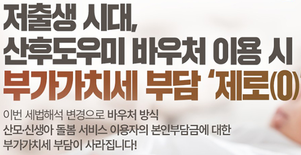 산후도우미 바우처 이용과 관련해 부가가치세 적용 기준이 조정되었습니다.