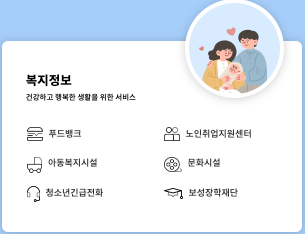 복지정보 메뉴는 군민의 생활과 관련된 복지 제도를 안내하는 공간입니다.