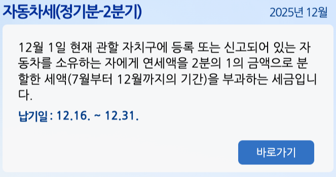 12월은 2025년 제2기분 자동차세가 안내되는 시기로, 납부 대상과 기간 및