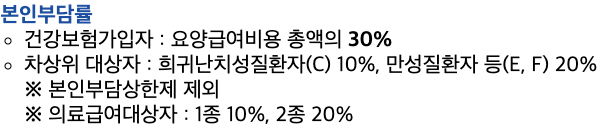 → 질환 종류에 따라 10% 또는 20%만 부담하게 됩니다.