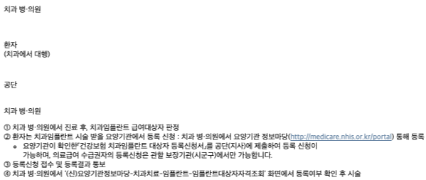 5. 임플란트 치료 후 일정 기간이 지난 뒤의 관리 비용은 건보료가 적용이 되지 않을 수 있습니다.