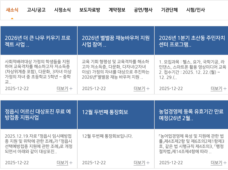 정읍시청 홈페이지는 시정 소식과 각종 행정 안내 정보를 PC와 모바일 환경에서