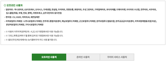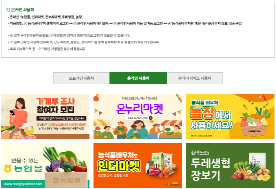 구체적인 온라인 사용 가능 여부와 대상 품목은