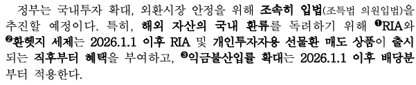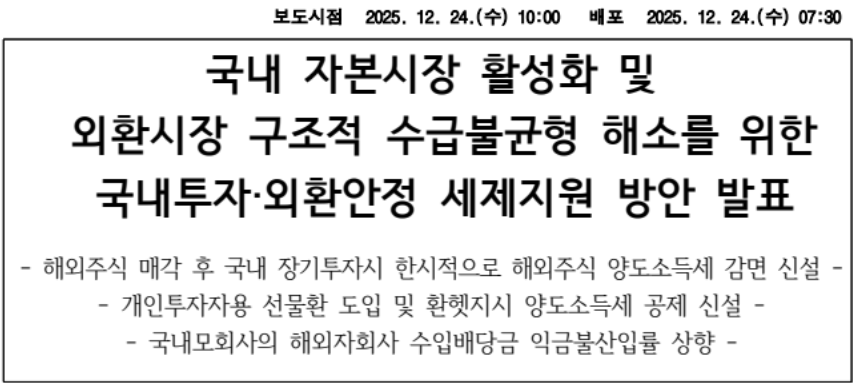 정부는 국내 자본시장과 외환시장 여건을 함께 고려한 세제 지원 방향을 발표했습니다.