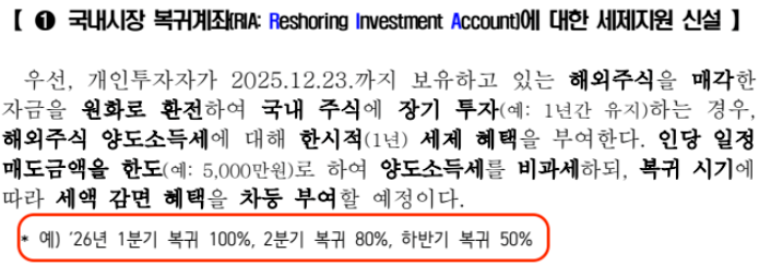 국내 자금 복귀 여부를 확인하는 하나의 예시로 안내하고 있습니다.